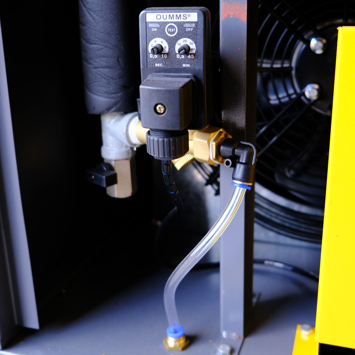 A rendszer automatikus, elektronikusan vezérelt kondenzvíz-leeresztővel van felszerelve. A speciális szelepnek, a fém szűrőnek és az innovatív vízvisszatartó megoldásnak köszönhetően stabil és megbízható kondenzvíz-elvezetést biztosít visszaáramlás kockázata nélkül.