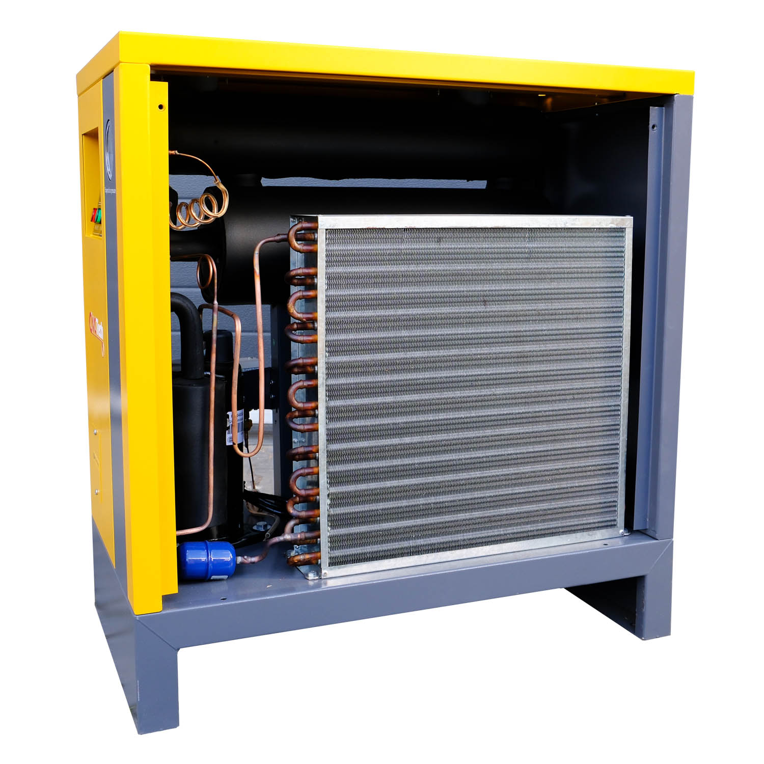 A nagy hatásfokú elpárologtató rendszer nagy hőcserélő felületet biztosít. Ez hosszú levegőtartózkodási időt és alapos nedvességkiválasztást eredményez — a végeredmény optimálisan szárított sűrített levegő.