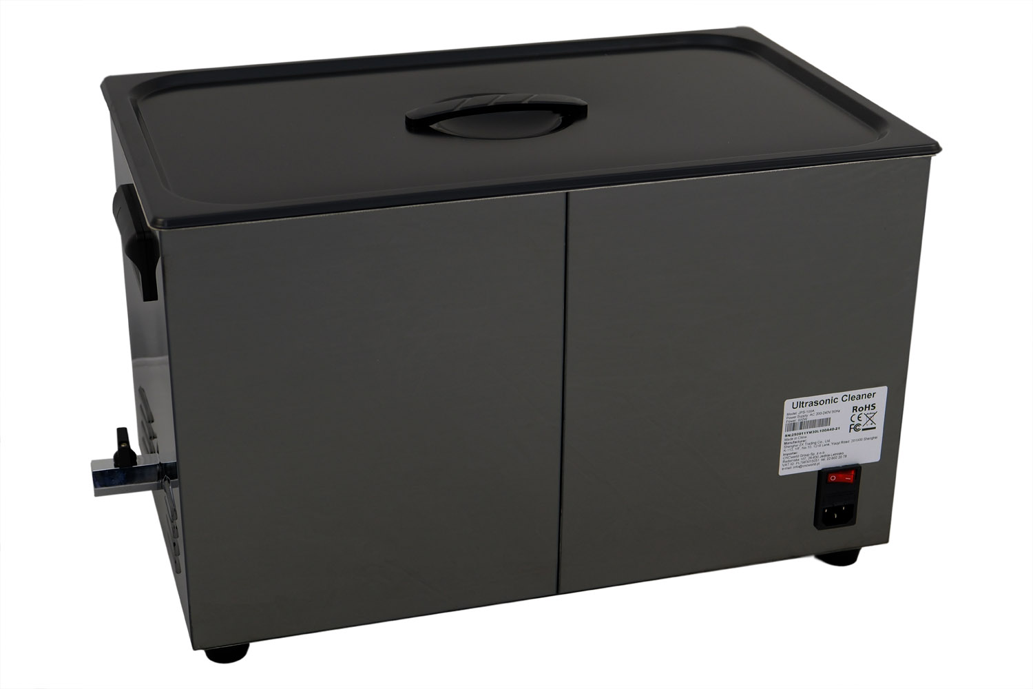 A GX100A ultrahangos tisztító egy kiváló minőségű SUS304 rozsdamentes acél tartállyal van felszerelve, melynek űrtartalma 30 liter. Az ultrahangos teljesítmény 600 W, a fűtőteljesítmény pedig 500 W.